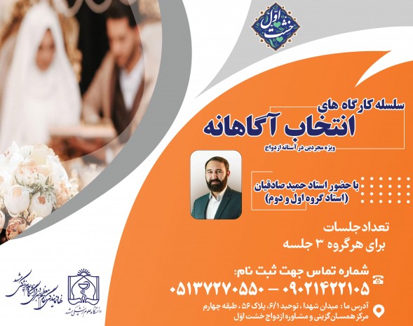 به گزارش روابط عمومی نهاد نمایندگی دانشگاه علوم پزشکی مشهد، نخستین دوره‌ی این کارگاه های آموزشی، از تاریخ 30 آذر الی 2 دیماه، در قالب جلسات سه روزه و در دو گروه جداگانه‌ی‌ خانم ها و آقایان  با حضور دکتر حمید صادقیان از اساتید مطرح در حوزه ازدواج و خانواده برگزار خواهد شد.
