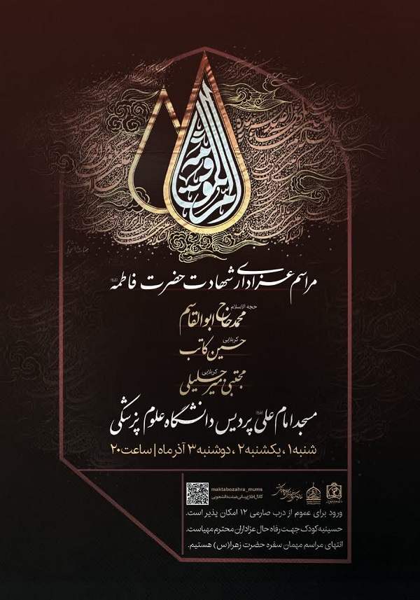 بر اساس این گزارش، مجالس سوگواری از شنبه اول تا دوشنبه سوم آذرماه سال جاری، از ساعت ۲۰ تا ۲۲ در مسجد امام علی(ع) واقع در بولوار شهید صارمی، مقابل شهید صارمی ۱۲ برگزار میشود.