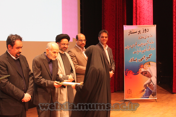 دکتر عباس حیدری به عنوان نخستین دانشیار پرستاری ، حمید رضا شیخیان پرستار نمونه بیمارستان امام رضا(ع)، نیره محسنی صفر آبادی پرستار نمونه بیمارستان قائم (ع)، محمد صالحی فر پرستار نمونه بیمارستان شهید کامیاب ، احمد احمدی کاردان اتاق عمل بیمارستان خاتم الانبیا(ص) تایباد ، علیرضا عباسی از بیمارستان لقمان حکیم سرخس ، سلمه عباس زاده از بیمارستان امام خمینی (ره) درگز، زهرا کاهانی از بیمارستان 17 شهریور مشهد ، محسن امامی فر منتخب نظام پرستاری مشهد از بیمارستان پاستور ، جواد صفر زاده از بیمارستان امام حسین (ع) مشهد ، نیره داودی مربی نمونه دانشکده پرستاری و مامایی ، طاهر محبی از بیمارستان شهید هاشمی نژاد ، زهرا ماروسی از بیمارستان خاتم الانبیا(ص) مشهد ، عصمت حسینی از بیمارستان ابن سینا ، میترا دین دار از بیمارستان موسی بن جعفر (ع) قوچان ، علی حسن پور از بیمارستان ولیعصر بردسکن ، پروین زرین قلم از بیمارستان حضرت ابوالفضل کاشمر ، عفت قربانی از بیمارستان ثامن الائمه ناجا، محمد مهدی تندیسه پور از بیمارستان فارابی ، صدیقه فهری از بیمارستان 550 تختخوابه ارتش ، غلامحسین آسیایی از پرسنل اورژانس 115، محمد مهدی بخشی بهیار نمونه شبکه بهداشت و درمان فیض آباد ، فرزانه مولایی از مرکز بهداشتی درمانی شماره 1 مشهد ، مهناز حقی کمک بهیار نمونه بیمارستان زنان ام البنین (س)، زهرا دشت بیاض از بیمارستان دکتر شیخ ، حمیده زارعی از بیمارستان امید ، سمیه شیری از بیمارستان سجادیه تربت جام ، حواء عبداللهی کارشناس پرستاری مدیریت درمان ، محمد علی قلعه گیر از بیمارستان دکتر حجازی ، حمید رضا جلالزایی از بیمارستان شریعتی ، افسانه پور عباس از بیمارستان طالقانی ، جواد براتی از دانشکده دندانپزشکی ، بتول صالح زاده از بیمارستان شهید مدرس کاشمر ، کلثومه نوروزی از بیمارستان شهدا قوچان ، محمد اسکندری از بیمارستان ثامن الائمه چناران ، سوزان شیران زایی از بیمارستان سینا ، زهرا نوری از بیمارستان رضوی ، محمد رضایی بوری آبادی از شبکه بهداشت و درمان زاوه ، زهرا نور محمدی از بیمارستان امام خمینی فریمان ، عبدالرحمان حریف از بیمارستان 22 بهمن خواف ، مینو عرفانیان از بیمارستان امام هادی (ع)، ونوس حقیر از بیمارستان مهر مشهد ، زهرا جمال آبادی از بیمارستان 22 بهمن مشهد ، وحیده جاویدی از بیمارستان منتصریه ، ستاره عارفی از شبکه بهداشت و درمان رشتخوار ، محمود قصابی از بیمارستان آریا، علی عابدی از شبکه بهداشت و درمان فیروزه ، فاطمه سهرابی از بیمارستان حضرت سجاد مشهد ، فاطمه مهدوی لائین از شبکه کلات ، فرسته ساعدی از بیمارستان پاستور مشهد ، نادیا جوادی از بیمارستان جواد الائمه مشهد ، مژگان امینی هراتی از بیمارستان بنت الهدی ، موسی معصومی از شبکه بهداشت و درمان باخرز، معصومه ضابطی نیا از بیمارستان لقمان حکیم سرخس ، بهناز سمیعی از بیمارستان شهید کامیاب ، مژگان غیاثی از بیمارستان امام رضا(ع) مشهد ، فاطمه اسماعیل زاده از بیمارستان طالقانی ، زلیخا سعادتی بیمارستان شهید هاشمی نژاد ، محمد علی ازغندی از بیمارستان شهید هاشمی نژاد و طاهره براتی از بیمارستان قائم(ع) از جمله پرستاران نمونه تقدیر شده بودند.