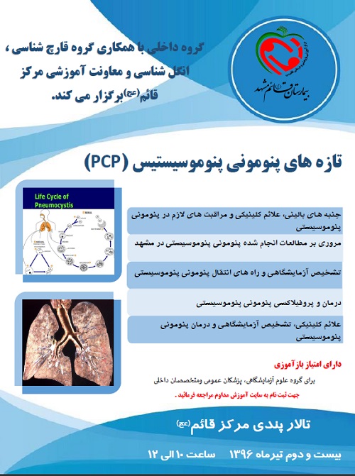 کنفرانس علمی تازه های پنومونی پنوموسیستیس در مرکز آموزشی پژوهشی درمانی قائم(عج) از مراکز زیر پوشش دانشگاه علوم پزشکی مشهد برگزار می شود.