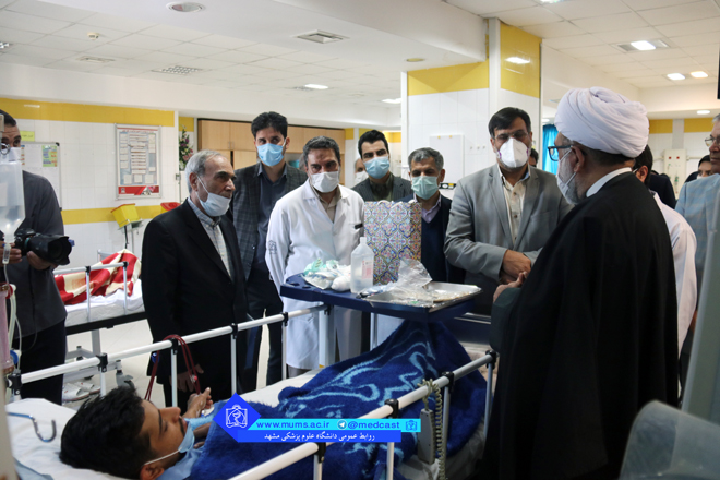 عیادت تولیت آستان قدس رضوی و رییس دانشگاه از بیماران پیوندی بیمارستان منتصریه