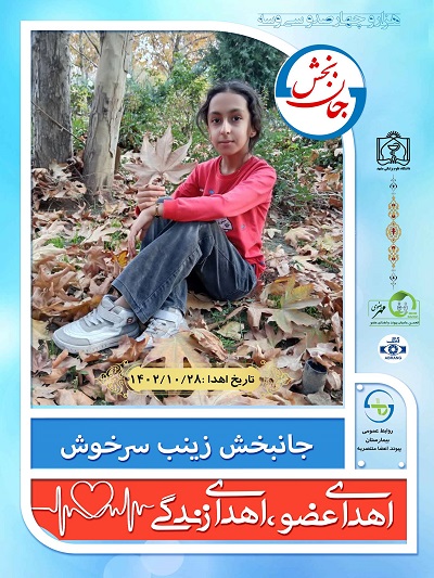 مسئول واحد فراهم آوری اعضای پیوندی دانشگاه علوم پزشکی مشهد گفت: قرنیه های زنده یاد زینب سرخوش جهت پیوند به بانک چشم دانشگاه علوم پزشکی مشهد و قسمتی از پوست ایشان برای پیوند به بیماران بخش سوختگی بیمارستان امام رضا(ع) مشهد ارسال شد.