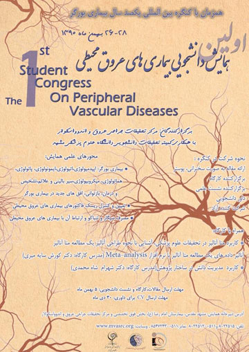 به گزارش وب دا ، این همایش 26 الی 28 بهمن ماه در محورهای بیماری بورگر اپیدمیولوژی ، اتیولوژی ، ایمونولوژی ، پاتولوژی ، هماتولوژی ، میکروبیولوژی، سیر بالینی ، تشخیص و درمان ، بازتوانی ، افق های جدید در بیماری بورگر ، تعیین و کنترل ریسک فاکتورهای بیماریهای عروق محیطی ، مصرف سیگار و تنباکو و ارتباط آن با بیماریهای عروق محیطی با همکاری مرکز تحقیقات جراحی عروق و اندوواسکولار و کمیته تحقیقات دانشجویی دانشگاه علوم پزشکی مشهد برگزار می شود .