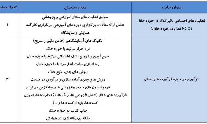 وی گفت: در راستای سلسله جلسات کمیته اجرایی و علمی این همایش مقرر شد، به فعالان برتر در حوزه حلال و فرآورده های حلال جوایز نفیسی به رسم یادبود اهدا گردد.