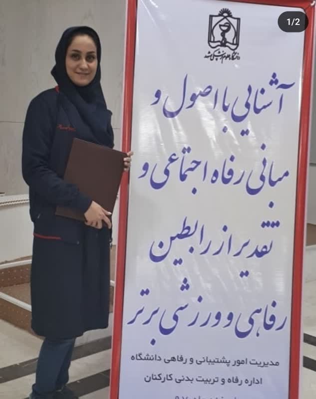 کارمند و رابط برتر ورزشی در بیمارستان ابن سینا ( از مراکز وابسته به دانشگاه علوم پزشکی مشهد) با اشاره به فعالیت خود در رشتههای مختلف ورزشی، بر نقش فعالیتهای ورزشی در تقویت قوای روحی و جسمی افراد تاکید کرد.