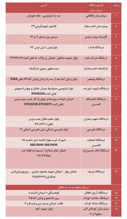 مسئول کارگروه مراقبت و درمان کووید-19 دانشگاه علوم پزشکی مشهد از افزایش یک مرکز دیگر به مراکز خدمات دهنده سطح دو به بیماران کووید-19 خبر داد و اظهارکرد: در حال حاضر 18 مرکز در مشهد به این بیماران خدمات سطح دو را ارائه می دهند.
